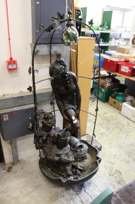 A large bronze effect figural water feature.