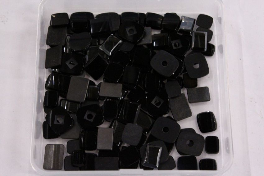 A box of loose coloured stones.
