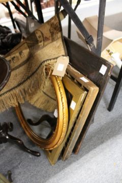 A brass and mirrored fire screen and miscellaneous collectables.