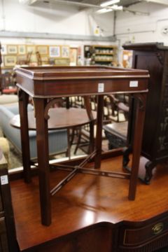 A pair of mahogany tray top lamp tables.