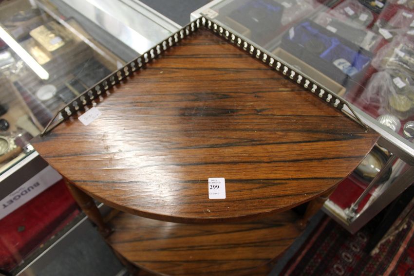 A rosewood three tier corner what-not.