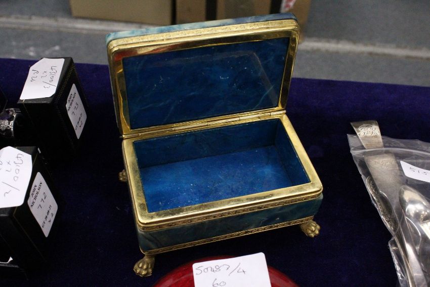 An ormolu mounted hardstone casket with hinged cover.