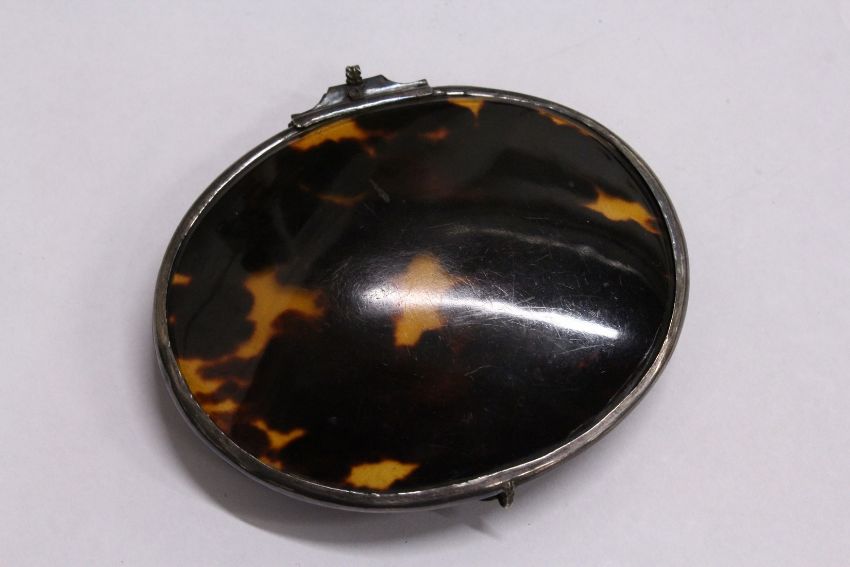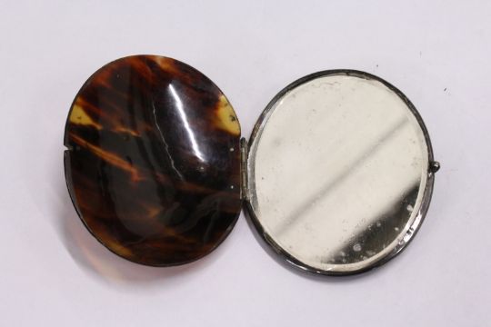 A tortoiseshell and white metal mounted hinged hand mirror.