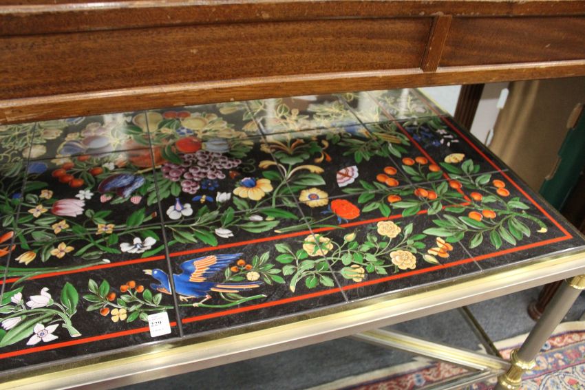 A decorative tile top coffee table.