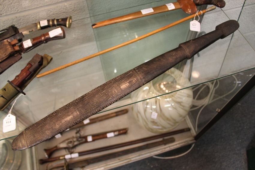 A Polynesian carved hardwood club.