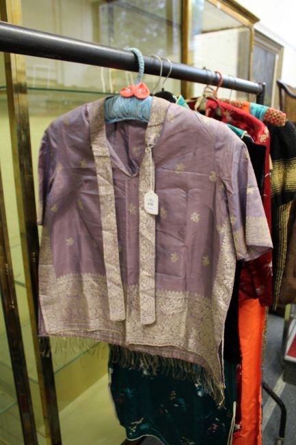A ladies lilac silk small dress, made from Indian sari fabric.