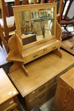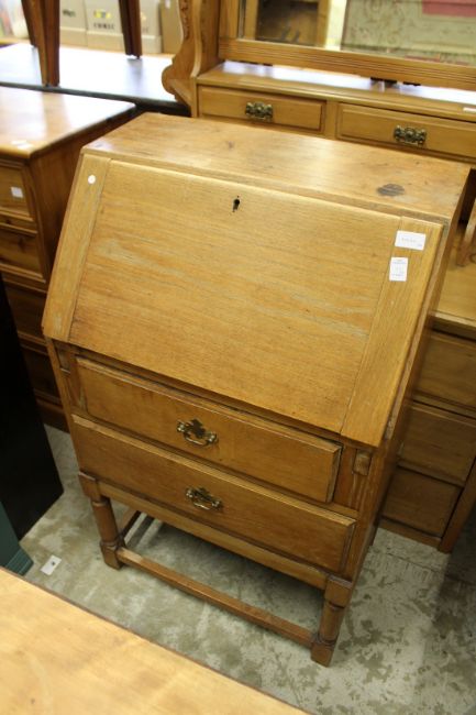 A demi-lune console table, a small oak bureau and a Victorian dressing chest.