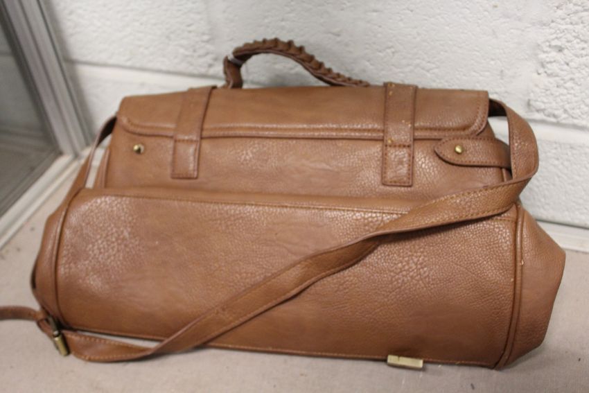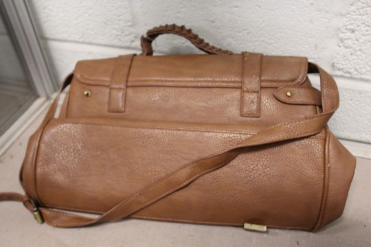 A ladies' brown leather handbag.