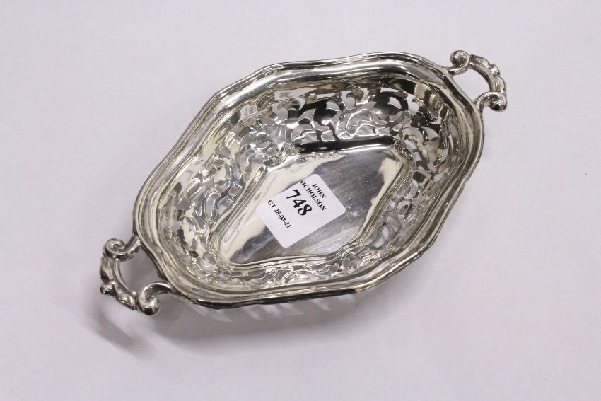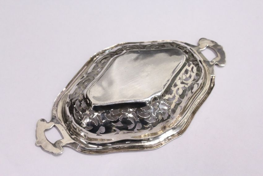 A pierced silver twin handled bonbon dish.