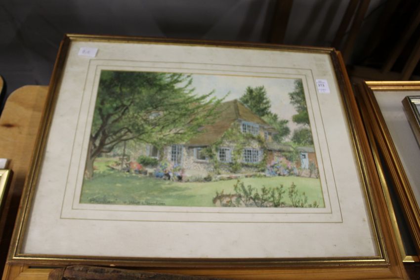 Dennis Summerfield "Cottage at West Clandon" watercolour together with an amusing photographic print.