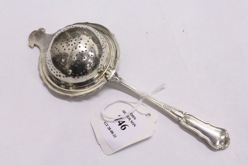 A silver tea strainer.