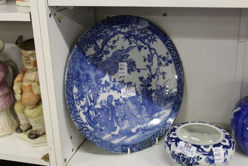 A Japanese blue and white decorated porcelain plate.