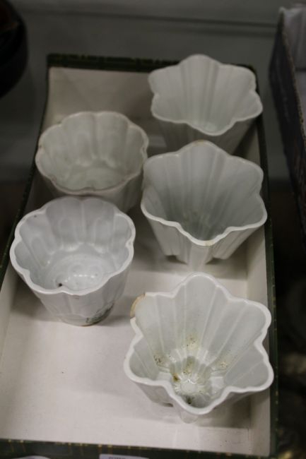 Five small Shelley jelly moulds.