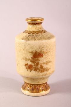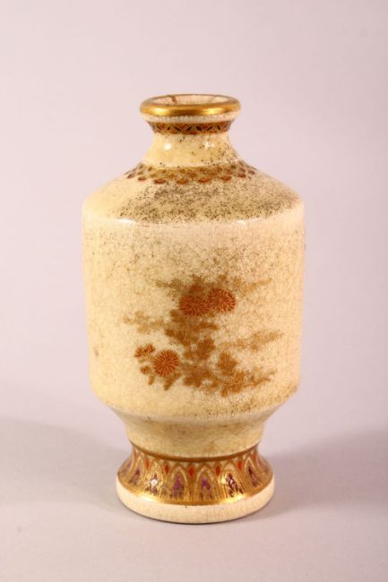 A JAPANESE MEII PERIOD SATSUMA VASE - decorated with simplistic native floral display with gilded highlights, the base with a gilt seal and signature, 15cm
