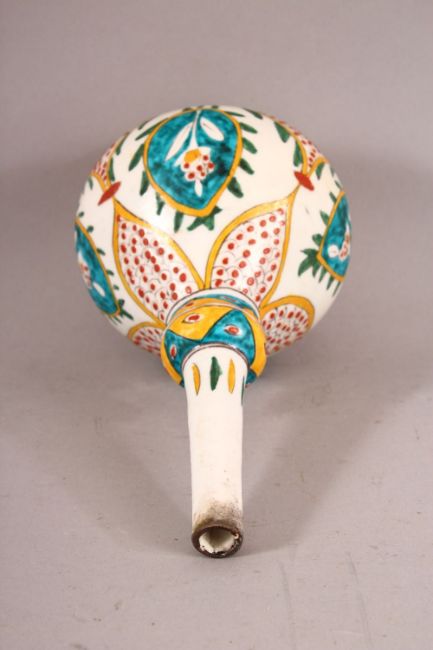 A TURKISH KUTAHYA ROSE WATER SPRINKLER - decorated with floral motif decorations, 20cm