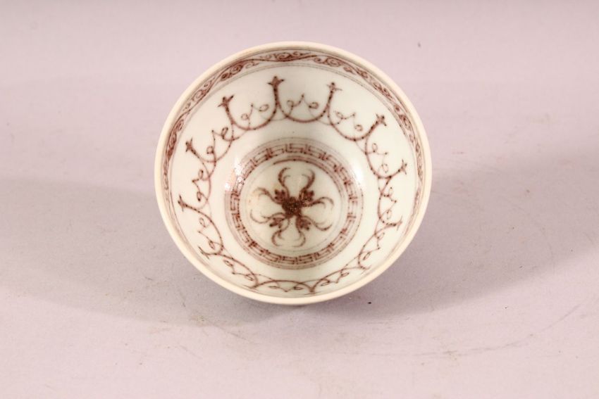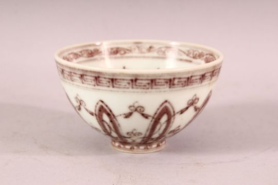 A RED AND WHITE PORCELAIN TEA BOWL, 9cm diameter.