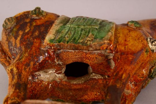 A CHINESE TANG STYLE SANCAI POTTERY MODEL OF A HORSE, 25CM