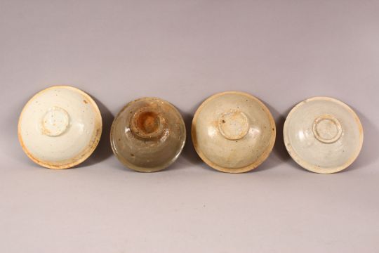 A MIXED LOT OF 4 EARLY CHINESE POTTERY BOWLS - Varying glaze types & sizes -largest from 16cm diameter