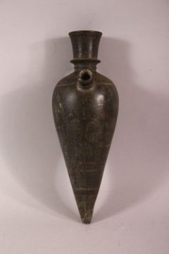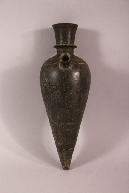 AN 18TH CENTURY TRAVEL HUQQA with very faint traces of silver, 19cm long.
