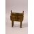 A CHINESE ARCHAIC STYLE TWIN HANDLE CENSER & STAND - with archaic style decoration and wooden stand - 12cm x 15.5cm