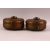 A PAIR OF INDIAN SPICE BOXES, both with hinged lid and handle to top, both approx. 21cm diameter.