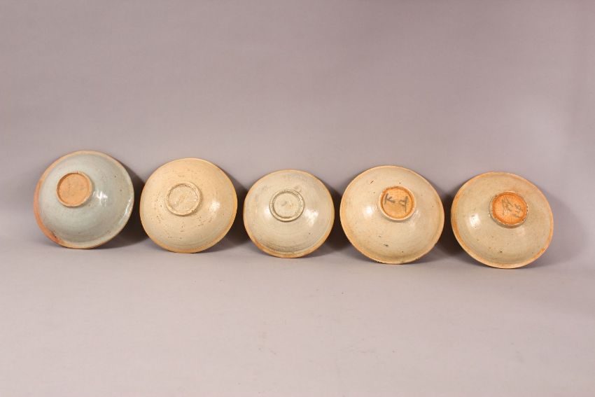 A MIXED LOT OF 5 EARLY CHINESE POTTERY BOWLS - Varying glaze types & sizes -largest from 16cm diameter