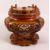 A JAPANESE MEIJI PERIOD CARVED WOODEN REVOLVING VASE STAND, with carved frieze panels of flora, on four curving feet, 25cm diameter.