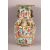 A 19TH CENTURY CHINESE CANTON FAMILLE ROSE PORCELAIN VASE - with panel decoration of figures, flora, birds and butterflies, gilt moulded chilong and lion dog handles, 32cm