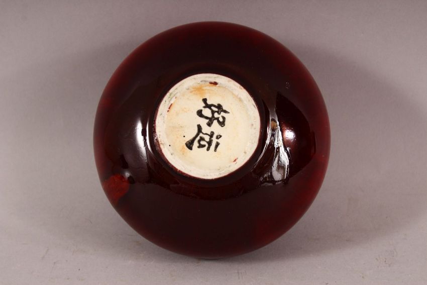 A CHINESE GLAZED RED VASE AND A SMALL ENAMELLED VASE, 9cm and 12cm.