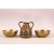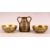 A 19TH CENTURY CAIROWARE TRIO - comprising two small inlaid bowls and an inlaid twin handle vessel, each item inlaid with silver and copper with calligraphy, the bowls: 10.5, the vessel 10cm. (3)