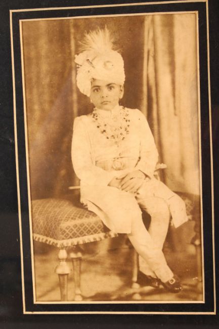 AN ORIGINAL PHOTOGRAPH OF A MAHARAJA, possibly Maharaja Shrimant Lokendra Singhji Sahib Bahadur, Maharaja of Ratlam, framed and glazed, 43cm x 32cm overall.