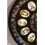 A BIDRI STYLE METAL DISH INSET WITH IVORY MINIATURE PORTRAITS, the dish with possibly silver inlay and twelve hand painted miniature portraits on ivory, 21cm diameter.