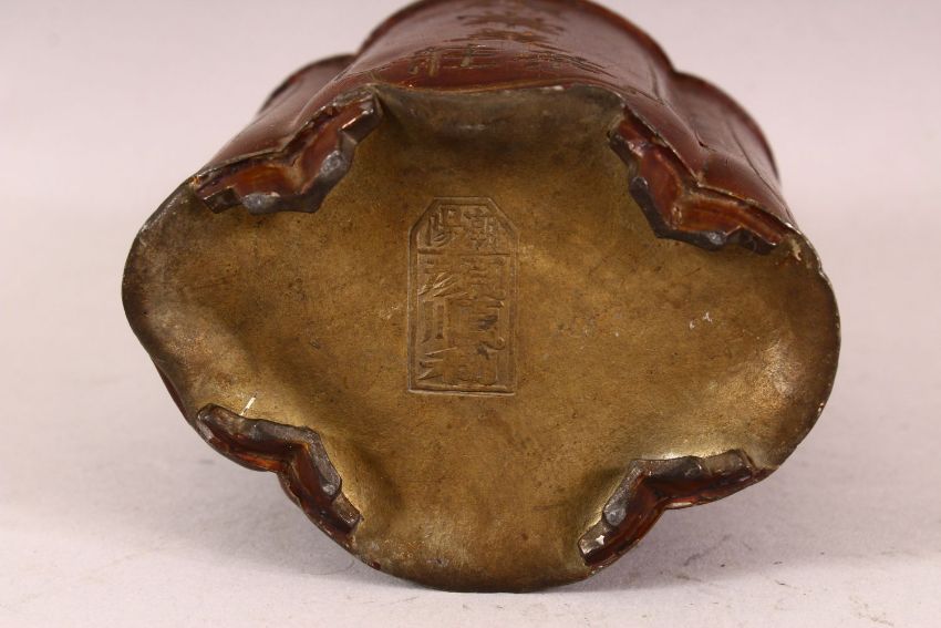 A CHINESE PEWTER CALLIGRAPHY TEA CADDY - with calligraphy decoration, the base with an impressed mark, 15cm