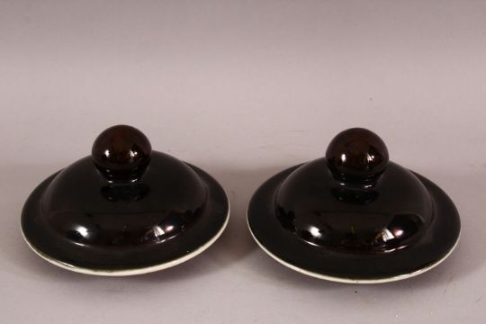A PAIR OF CHINESE FAMILLE NOIR PORCELAIN GINGER JARS & COVERS, 30cm