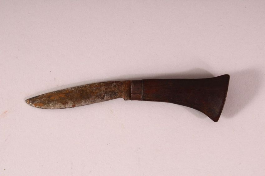 AN EASTERN HORN HANDLE & LEATHER SHEATH DAGGER SET, with a leather sheath, the main dagger with a horn handle, also with a smaller wood handles dagger, 38cm