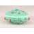 A LARGE 19TH / 20TH CENTURY CHINESE FAMILLE ROSE PORCELAIN BOWL & COVER - decorated with a turquoise ground ith butterflies and fruits, with moulded handle mounts to the side, 28cm