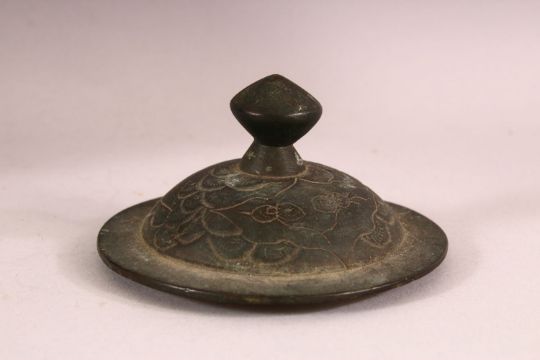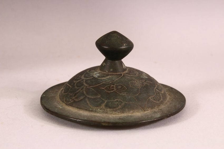 A 19TH / 20TH CENTURY CHINESE BRONZE VASE & COVER, with panels of birds and animals, the base with an unusual mark, 23cm