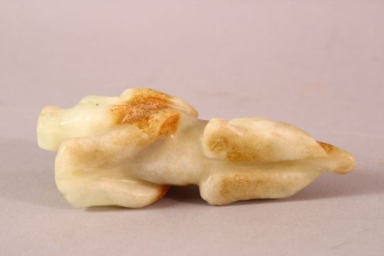 A CHINESE WHITE JADE CARVING in the form of an animal, 10cm long.