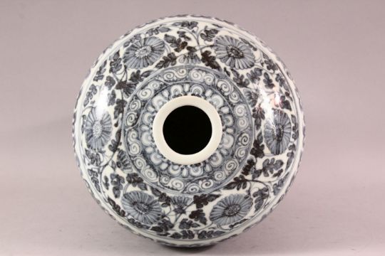 A CHINESE BLUE & WHITE PORCELAIN MEIPING VASE, decorated with scenes of lotus, 36cm high