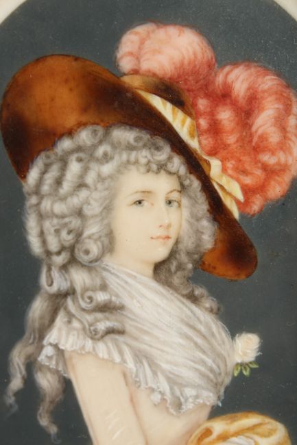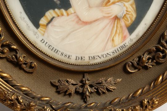 A SUPERB OVAL FRAMED PORTRAIT OF DUCHESSE DE DEVONSHIRE.