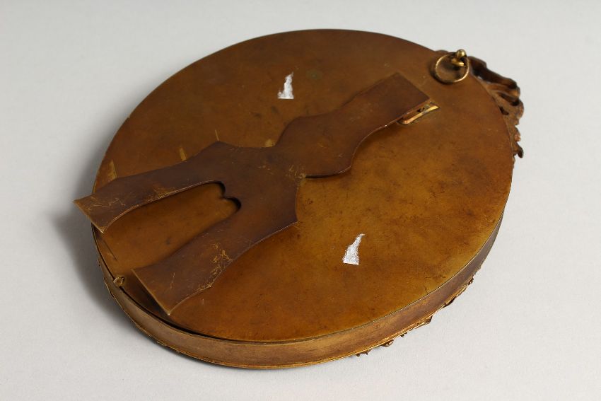 5ins x 3.5ins in a ormolu frame with scrolls, flowers and ribbons.