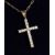 A 9CT GOLD DIAMOND CRUCIFIX ON A CHAIN.
