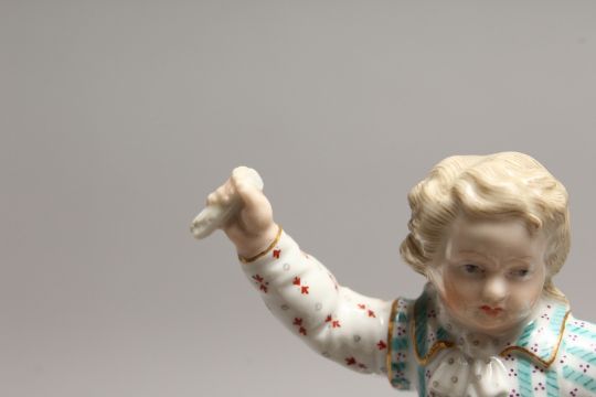 A SUPERB 19TH CENTURY MEISSEN CIRCULAR GROUP OF FIVE CHILDREN on a rock with a dog, depicting music on a circular rocky base.