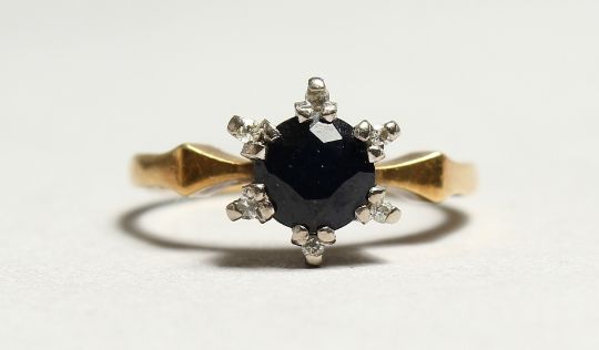A WHITE GOLD DIAMOND AND SAPPHIRE RING