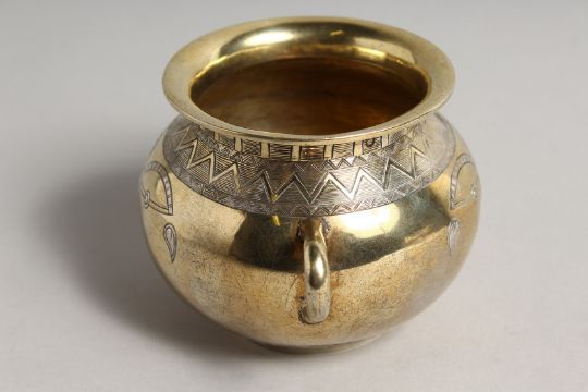 A DUTCH SILVLR GILT CIRCULAR TWO HANDLED BOWL with silvered decoration.