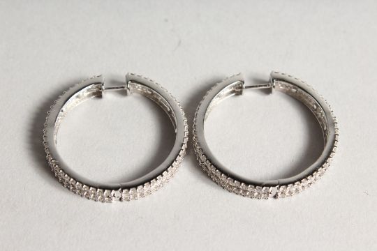 A VERY GOOD PAIR OF 18K WHITE GOLD AND DIAMOND, LARGE DIAMOND SET, HOOP EARRINGS
