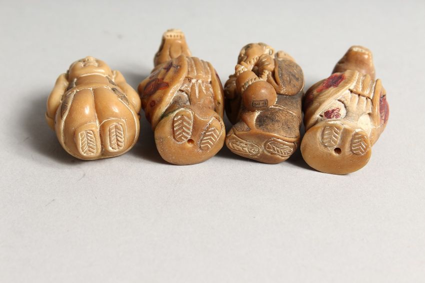 FOUR CARVED BONE NETSUKES