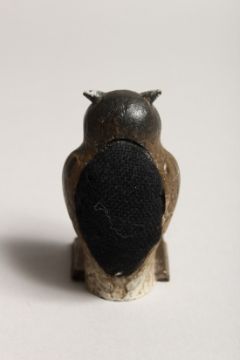 A COLD PAINTED OWL PIN CUSHION