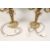A GOOD PAIR OF FRENCH BRONZE THREE BRANCH CANDELABRA with scrolling arms and porcelain flowers