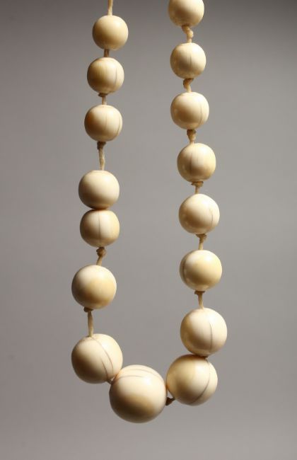 A GOOD GRADUATED IVORY BEAD NECKLACE on thirty beads